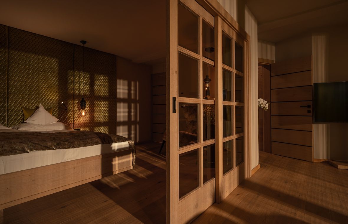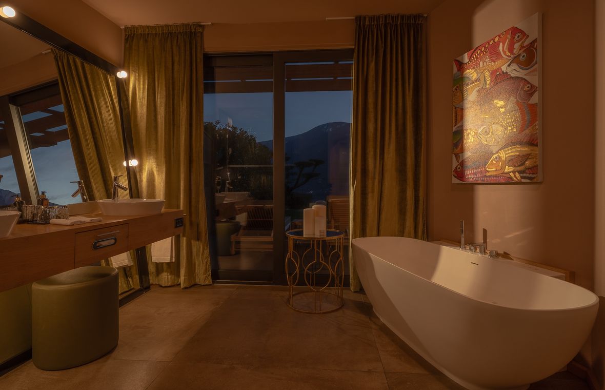 Begehbarer Schrank, Klimaanlage, 2x TV, Hi-Fi Anlage, Minibar, Whirlwanne & begehbare Dusche mit Regenfall, Bidet, WC getrennt