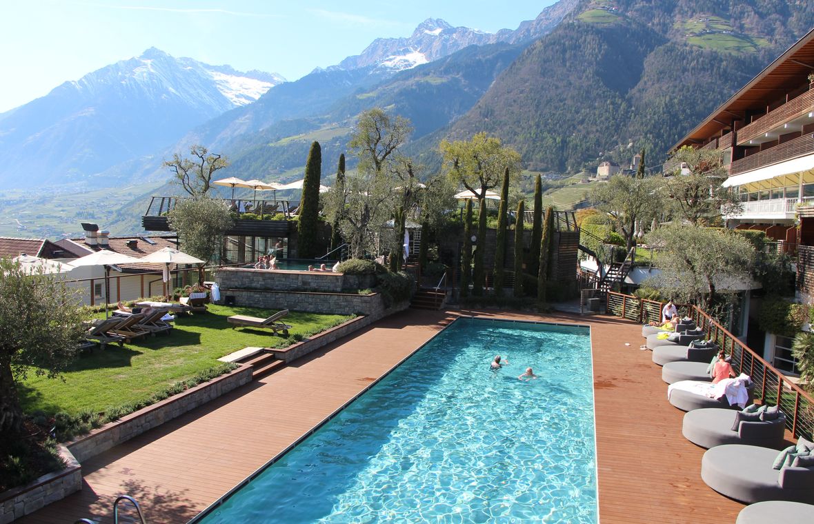 Tauchen Sie ein in unsere großzügige Wellnesswelt mit zehn verschiedenen Saunen, Indoor- und Outdoorpools, Ruhezonen mit Panoramablick und mediterranem Flair.