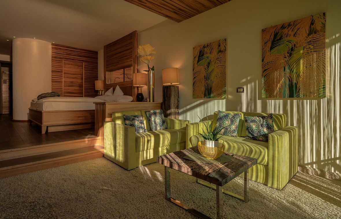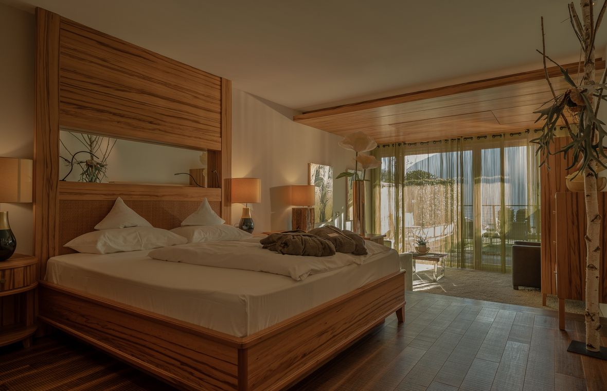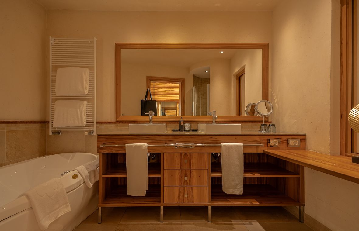 Giardino double roomTwin room with 48 m², south-facing balcony with private gardenWalk-in closet, air conditioning, TV, hi-fi system, minibar, bathtub & shower with rainfall, separate toiletfrom € 277,— per person, including wellness full boardCheck availabilities With best priceInquire room