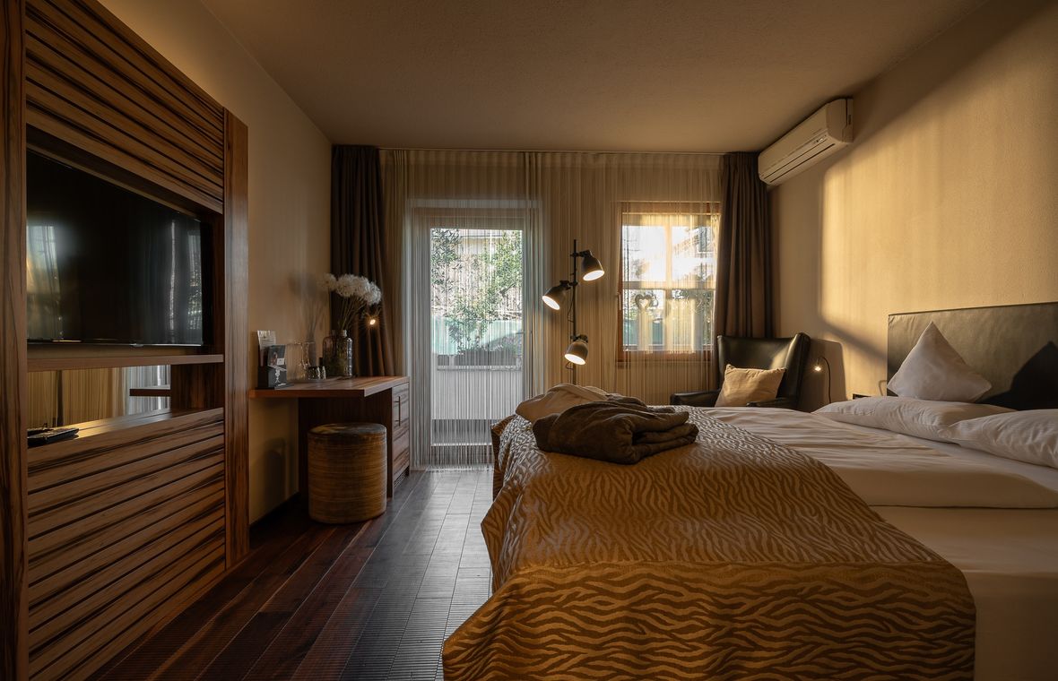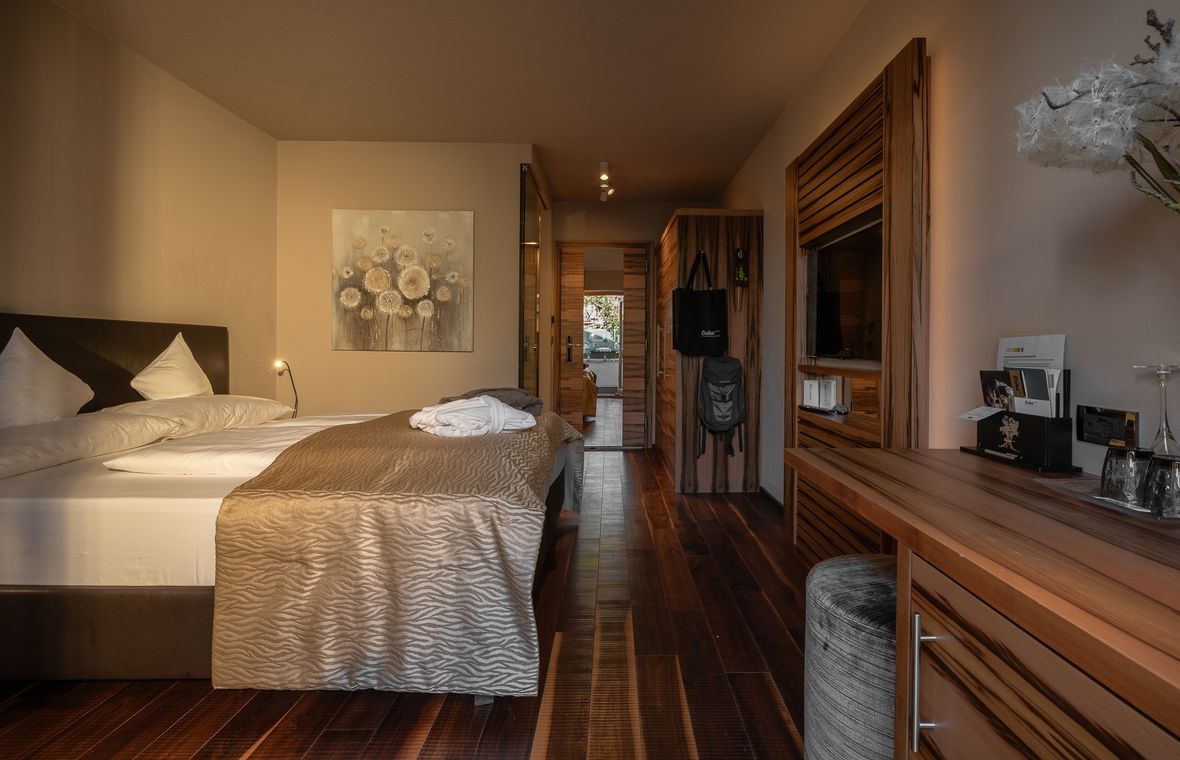 Teenie double roomSmall, simple room with 24m² and north-facing balcony with limited view of the village also bookable as a single room Teenie SingleBalcony oriented north, flat screen TV, air conditioning, minibar, shower, toiletfrom € 210,— per person, including wellness full boardCheck availabilities With best priceInquire room