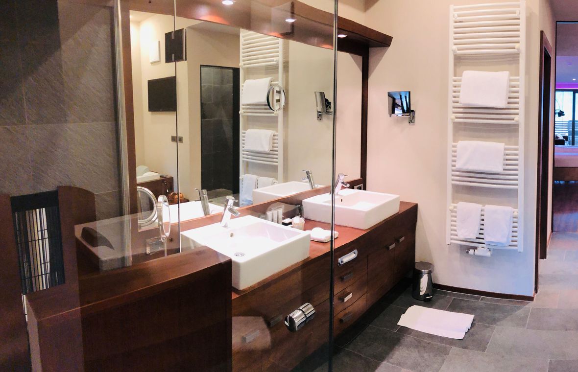 Letto rotondo girevole, aria condizionata, 2x TV, minibar, sauna a infrarossi, vasca idromassaggio e doccia, bidet, pissoir, WC separato